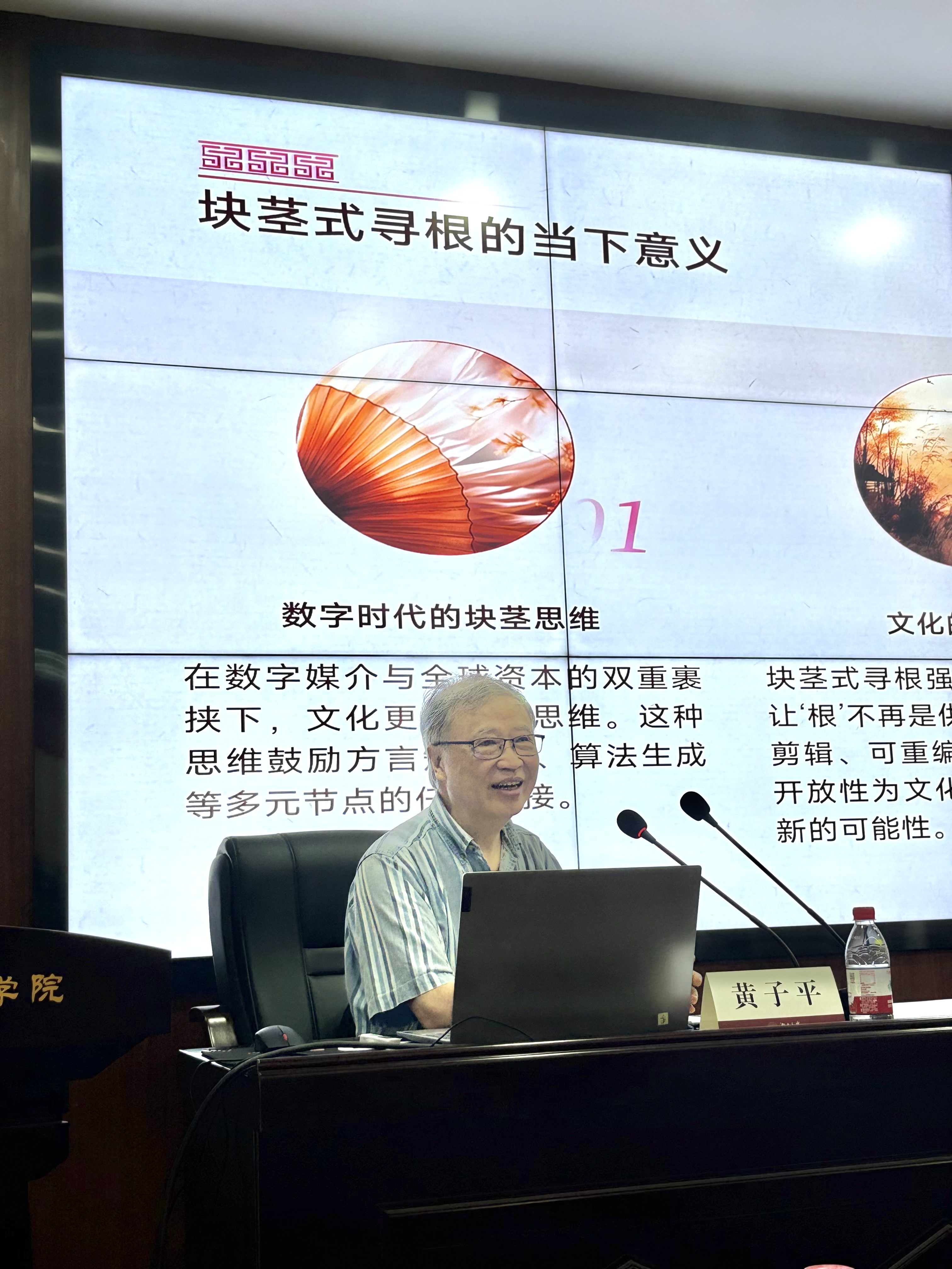 黄教授表示,德勒兹的“块茎”概念颠覆了传统的“根—树”模型。“块茎”强调去中心化,为寻根文学提供了新的阐释视角。他提出,寻根文学是重新发明传统而非回归传统,作家们不再追问“真正的根”而是编织“可能的根”,让传统文化在当代语境中生成新意义,形成了多元的文化景观。