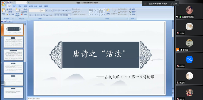 三次培训过后,我院于6月15日组织了试讲考核工作。试讲以腾讯会议方式进行,主题为小班讨论课的设计。学生依次介绍自己的教学设计,彭建国副院长与谭军武副教授点评了每位学生的设计,从主题设置、讨论效果等各个方面给出了指导意见。
