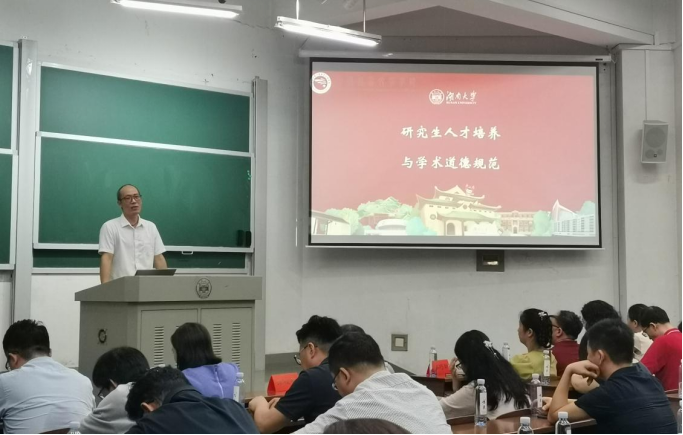 彭建国老师主要介绍了研究生人才培养管理制度与学术道德规范,提醒同学们要时刻警醒,坚决抵制学术研究中的不规范行为,如抄袭、剽窃他人研究成果、拔高或贬低他人观点、篡改数据、私占共同成果、代写论文、伪造签名等。他着重强调,同学们要树立学术道德的红线,坚守学术底线,在网上发表文章和公开言论要获得导师的审定和许可。彭老师建议同学们要尽快适应身份的转变,学会制定计划并坚决执行,要多阅读、思考和交流,度过充实的研究生生活。