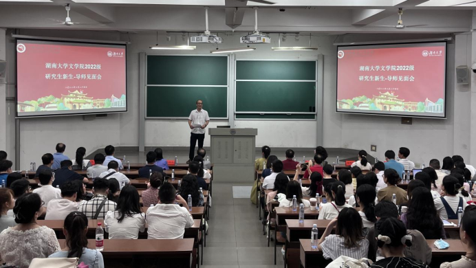 罗宗宇院长对2022级研究生新生的到来表示热烈欢迎,他向大家介绍了BV伟德官方网站文学院的发展历史、师资情况和学术研究成果。接着,罗院长用一句话开端,表达了对2022级新生的殷切期望:“做更优秀的自己。”惟楚有才,于斯为盛。新时代下,为适应社会发展的需要,同学们身为湖大学子,要做经世致用的领军人才,追求卓越,成就自我。罗院长据此提出五点建议:第一是树立明确的人生目标,牢记初心,做好研究生阶段性规划;第二是勇于创新,敢为人先,打破界限,独立思考;第三要笃学敦行,知行合一,坐得住学术研究的冷板凳,不心浮气躁;第四要讲规矩,恪守学术道德,遵守学术规范,不做精致的利己主义者;第五要保持“绝对”的身心健康,学会调节和管理情绪。最后,罗院长希望同学们要具有改变人生和坚定研究的勇气,砥砺自我,实现梦想,成为BV伟德官方网站文学院走向新历史的创造者和见证者。
